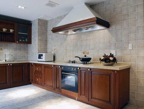 在颜色上可以选择冷色调的地砖,这样能产生一种凉爽的感觉,所以对于暖色调的厨房,进行地砖颜色选择时要格外小心,过于靓丽的厨房地砖,给人一种十分压抑的感觉。