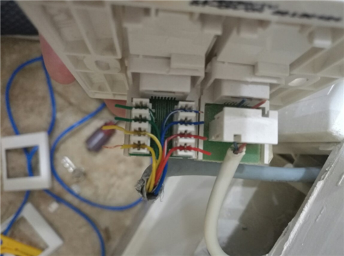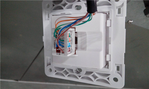 3、金属夹子已经切到结缘皮结合铜线芯已经通路,在网线插座接法当中,一定要注意刀口是否向外,如果忘记变成向内,压入同时切断了本来要连接的铜线,垂直插入打斜了的话,把金属夹子口进行撑开,让它没有咬合能力,将并且打线柱也就会歪掉,很难修复,那就说明这个模块就报废。如果是在冲击同时,能够减掉多条的线芯,如果不行可以多次冲击,并且用手拧掉。最后就是网线插座收尾时,把信息模块的塑料防尘片打扣到打线柱处,并且把打好线的模块扣入信息面板上。打线时一定要选用质量有保证的打线钳。
