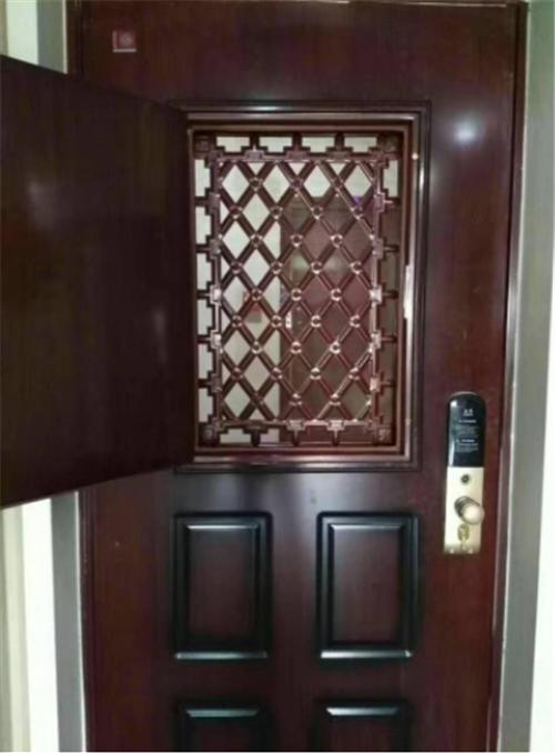 3、防盗门在改装通风窗时,防盗门不用拆卸,一般都分为三层,外面为护栏,中间为纱窗,里面都是填充岩棉性的小门,小门能够加装门镜。这样就省去更换防盗门时被破坏垭口,避免修复带来的麻烦。