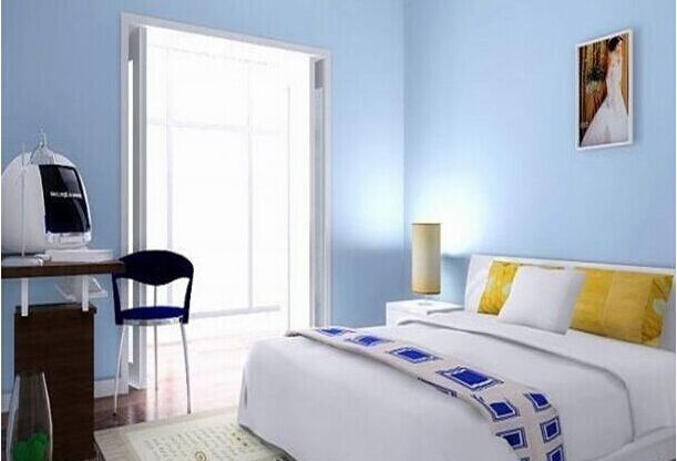 3、可以选择耐看的内墙漆颜色,比较耐看的颜色有粉色、浅蓝色等,而不同的色调会引起人们对距离感觉的差异。对于小房间,可以采用冷色调装饰,反之可以选择暖色调装饰,避免房间有空旷的感觉。