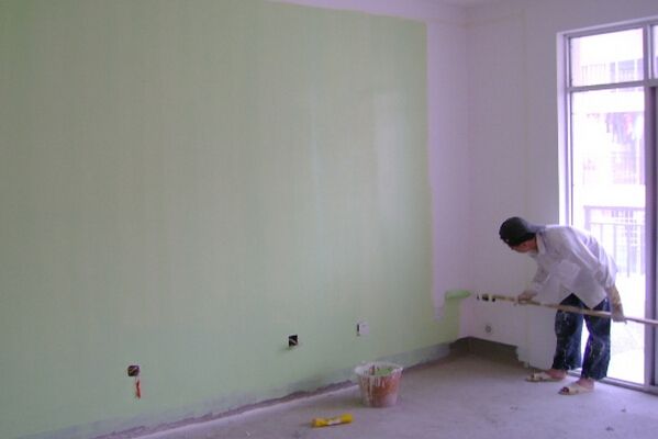 (3)如果墙面吸水率较大,那可以用封底剂,可以在打磨平整的墙面上涂刷一层,达到降低乳胶漆耗用量和提高施工质量双重作用。
