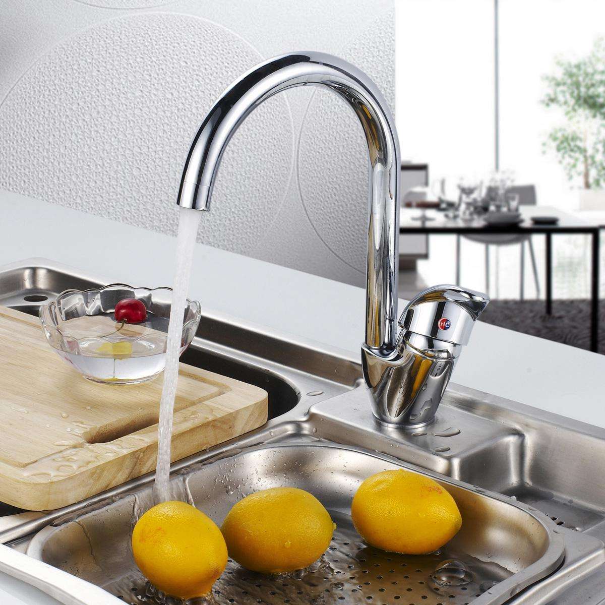 选择厨卫龙头时要知道水槽尺寸,根据尺寸选择合适的龙头,要确保出水口角度正对水槽正中,与水槽底部的距离刚好不易溅水。