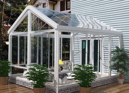 冬天就应该住在这样的阳光房里1、欧式阳光房 欧式阳光房是地中海式、维多利亚式、拜占庭式、哥特式等风格阳光房的统称,在现在的阳光房设计中是很常见的,想要呈现出更精美的表现,在建造时最好是请专业的结构工程师去设计框架,在材料选择方面也需要慎重,材料要符合国际基本要求,此外,在施工工艺方面也要注意细节,譬如材料搭配、框架连接件等等,即便是一颗小小的螺丝也会有影响的。 欧式阳关房除了玻璃外,整体型材一般以白色位置,而造型大多是尖顶的表现,内部会铺设深色的木地板,还会摆放布艺沙发、木质桌椅等,更倾向于休闲吧的布置,当然地面也可以铺设花砖。