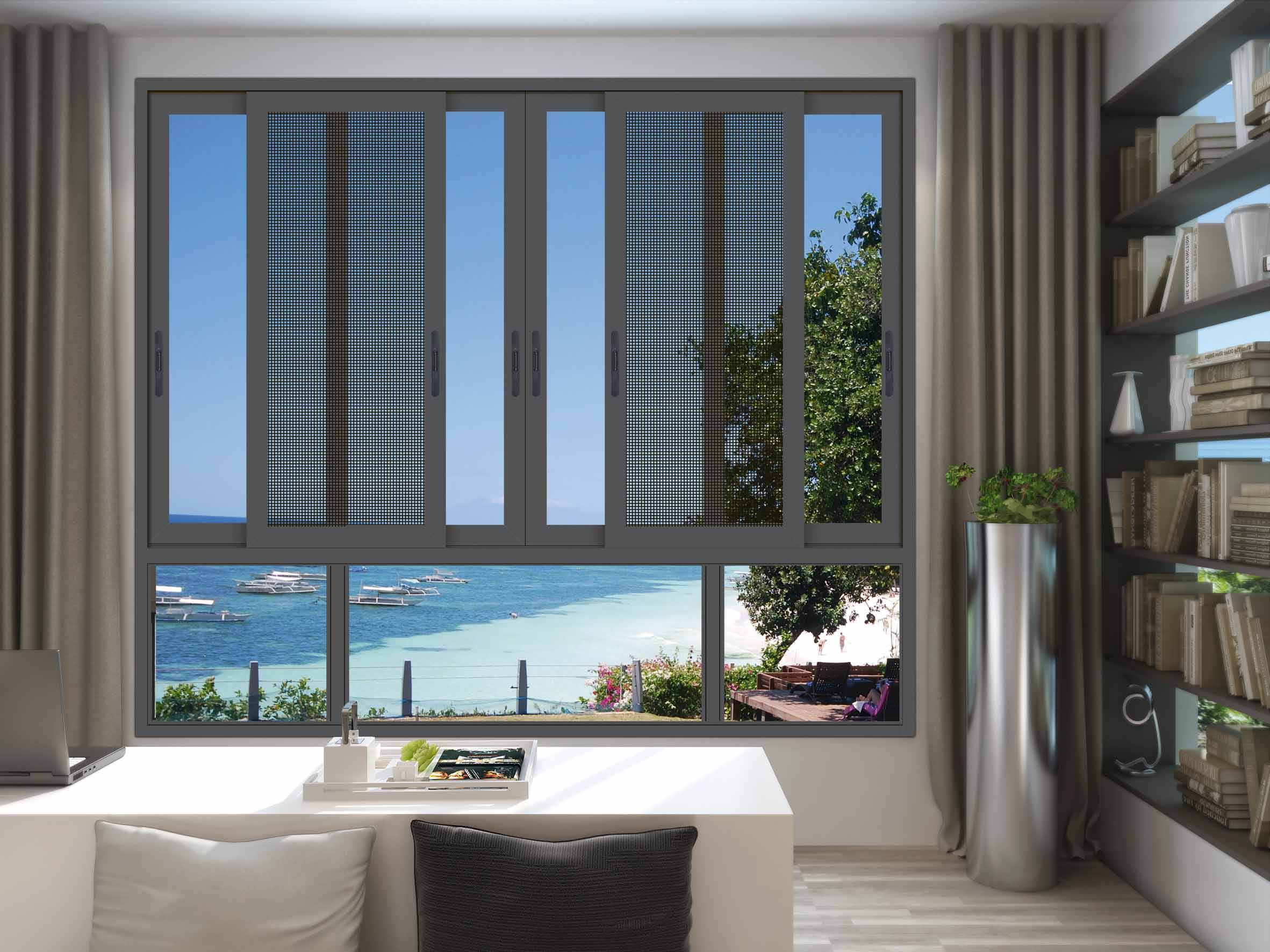 美式推拉窗的特点是线条简洁、矩形较多,这种美式推拉窗的上部提供足够室内照明,下部窗台上可以养绿植。美式推拉窗的优点在于美观、视野开阔、采光率高、使用灵活、安全可靠、占用空间少等;而缺点是两扇窗户不能同时打开,只能打开一半,通风性相对比较差,密封性也稍差,但在美式推拉窗户中,利用高度延长的设计,保证了基本的采光面积和通风面积。