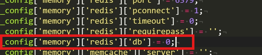 我们只需要修改根目录config/config_global.php文件即可。 打开config_global.php,找到$_config['memory']['redis']['server'] = ''; 大概在20行左右。然后修改成$_config['memory']['redis']['server'] = '127.0.0.1';就可以了。 需要注意的是下面$_config['memory']['redis']['db'] = 0; 这个地方,=0,很多人不知道是什么。