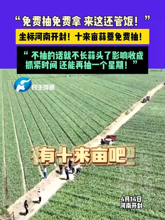 蒜苔免费摘,管饭管够!你还在高价买蒜台吃?我们这边已经开始免费抽蒜苔还管饭!——开封杞县邢口镇、祥符区李吾庄村、中牟县郑庵镇等地的蒜田里,农户们支起大锅、摆开桌椅,扯着嗓子喊:“免费抽蒜苔!抽多少拿多 ...
