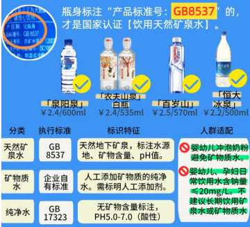 GB8537是什么水GB8537标准:符合国家GB8537标准的矿泉水才是合格的矿泉水。 矿泉水源自地下岩层,含天然矿物质(如钙、镁等),需经国家认证,符合GB8537产品标准。人工添加矿物质的水只能叫"矿物质水",不能称为天然矿泉水。