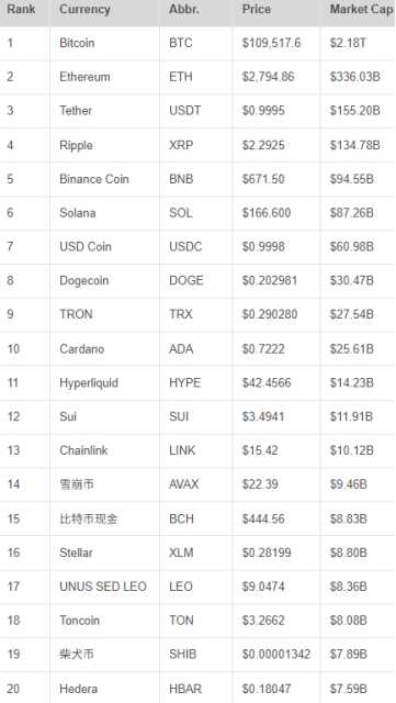数字货币买什么币好升值大这张表列出的是市值排名前20的数字加密货币。
