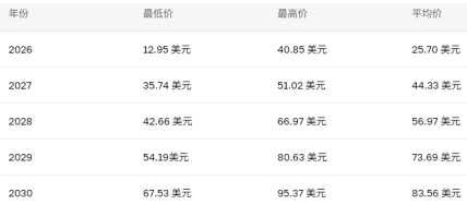 2030 年 Chainlink 价格预测到 2030 年,由于与 DeFi 平台的进一步整合,LINK 价格预计将持续上涨,价格最高可达 95.37 美元。 2026 至 2030 年价格预测: