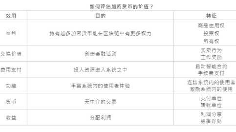 怎么判断加密货币的前景价值尽管最具代表性的比特币,整体市值已经超过8000亿美元(2021.09月),但这不代表只有比特币是有价值的加密货币。 整个加密货币市场还有像是以太币、莱特币等成千上万的加密货币,他们有着各自的价格、需求、转帐速度与手续费,甚至用的是不同的区块链技术,种种因素都可能会影响一个加密货币的价值与未来。 面对充满杂讯的加密货币市场,想要适当地评估一个加密货币的价值,避免陷入诈骗或承担过度风险,建议新手先做完以下4件功课: 阅读区块链计画白皮书 研究区块链计画能带来什么创新 评估计画里的加密货币价值 认识并避开加密货币诈骗 加密货币前景预测评估加密货币的6种角色 Mougayar认为,加密货币可以从以下3个面向去了解一个加密货币: 效用/角色Role 目的Purpose 特征Features 他又将加密货币在生态圈可能扮演的效用分成6种角色,而各自的角色都是为了解决某种问题、达到某种目的,而达成目的的方式特色也是评估的特点之一,以下表则分别解释Mougayar提出的,加密货币的6种角色: 权利(Right)效用:持有加密货币的多寡,代表持有者在此系统的权利高低,例如投票权。 交易(Value)效用:加密货币能帮助系统交易买卖双方进行交易。 费用支付(Toll)效用:持有者可以使用加密货币做为支付工具,来取得系统内的某些功能服务。 功能(Function)效用:持有加密货币的所有人,能够在系统内享有更多服务体验。 货币(Currency)效用:该加密会币不管在自己的系统内,或另一个系统中都能代表价值。 收益(Earnings)效用:加密货币能够为投资的人带来财务上的获利。 现在在市面上发行的加密货币种类众多,每种加密货币的功能、定位都不一样,在评估加密货币时就能从这6个角色出发,可以进一步去判断他的目的与特征有没有投资潜力(如以下表格):
