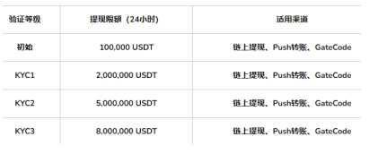 gate提现限额Gate.io 基于等级的提款限额 Gate.io 根据用户的验证级别提供分级提款限额,提供灵活性和选项来满足不同的需求。初始账户100,000小时内提现限额为24 USDT,而更高级别的验证(例如KYC3)则享有最高8,000,000 USDT的提现限额。 这些限制适用于链上提款、推送转账和 GateCode 交易,确保为用户提供无缝、安全的提款体验。需要注意的是,提现限额是所有提现渠道共享的,新的限额是按24小时净提现计算的。