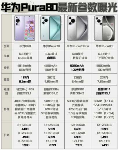 华为pura80配置参数信息华为即将发布的Pura 80 系列手机,备受瞩目的焦点在于其全新的主摄OV50X,这一成果是华为与豪威联合研发的杰作。据说,其整体性能将大幅超越目前市场上的索尼 lyt900,成为国产传感器的新巅峰!你觉得这个新机值得等值得买吗?