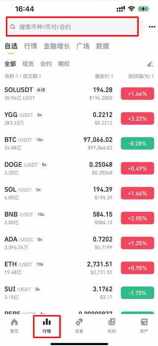 币安app购买KAITO币步骤教程1、还没下载、注册币安app的新用户,可以参考下此篇教程。 2、注册完成之后,下面打开币安app(官方下载),点击【行情】上方的搜索框;