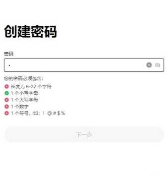 6、创建密码需要符合长度为 8-32 个字符、1 个小写字母、1 个大写字母、1 个数字、1 个符号,如:!@ # $ %等条件