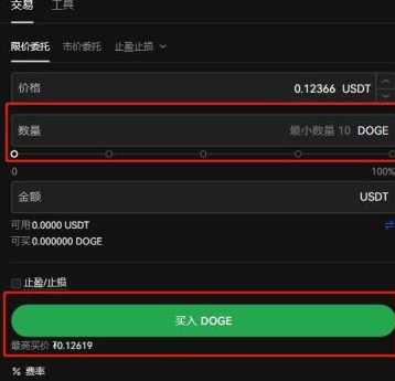 12、输入买入DOGE数量,点击买入DOGE就可以了