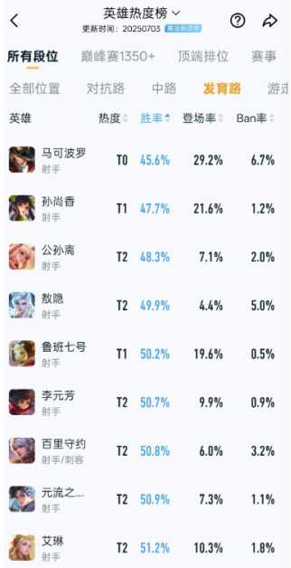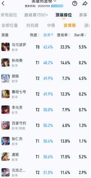 王者荣耀s40射手强度排行榜最新s40赛季射手胜率排行榜