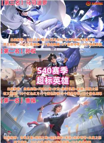 S40新赛季上分英雄推荐中路推荐:高渐离、沈梦溪、海月、不知火舞。高渐离团战爆发强,沈梦溪远程消耗一流,海月单挑无敌,火舞灵活切C,都是版本强势选择! 射手位:新赛季射手集体加强,绝对是上分首选!马可波罗真伤依旧强势,公孙离操作上限高,戈娅持续输出爆炸,艾琳法伤射手独特优势,总有一款适合你~ 对抗路:曹操续航能力强,元歌操作秀翻全场,狂铁前期压制力MAX,姬小满(纪小满)新晋线霸,选他们准没错! 打野位:镜依然T0级野王,裴擒虎节奏大师,刘备野区新星,爆发高、刷野快,带飞全场就靠他们啦~ 辅助位:桑启(邵思远)奶量十足,杨玉环团队增益强,张飞万金油保C神器,苏烈开团猛男,辅助玩家闭眼选! 小贴士:新赛季射手整体加强,想快速上分的小伙伴可以优先练习射手英雄哦