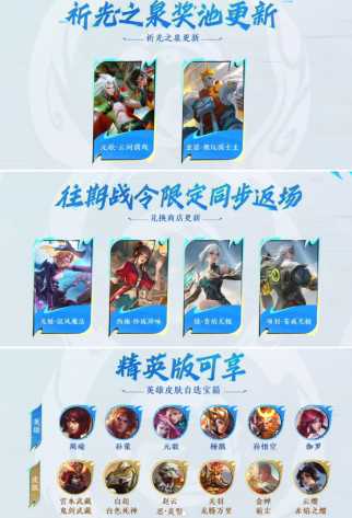 二、典藏版1、价格:1288点券,若购买上期战令,可以获得100点券优惠卡,优惠后1188点券即可购买。 2、主要奖励:除进阶版奖励外,额外赠送30级战令经验、专属头像框、表情、荣耀播报等。