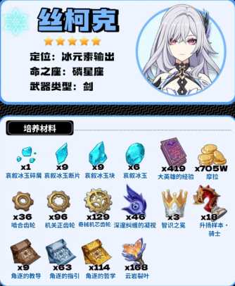 原神丝柯克突破材料大全建议提前囤积原石,优先抽取专武以适配双形态机制。5.7版本上线后,可结合深渊环境变化调整圣遗物词条(推荐暴击/暴伤为主)。