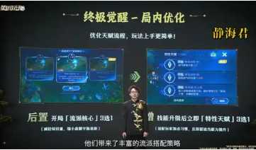 另外,为了让新玩家的体验感更强,策划还将核心流派3选1后置,并新增技能升级后特性天赋3选1的选择。 终极觉醒的局外系统也进行升级,在新赛季,终极觉醒会从限时开始→定期但限时开启(比如放到超级星期六的福利中)。 另外,新赛季还会针对终极觉醒开放成就徽章系统,玩家在完成了足够的对局数、场次后,会获得不同的徽章,徽章还会在游戏载入画面体现出来。