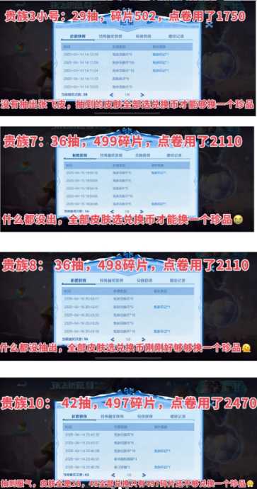 王者荣耀三丽鸥联动皮肤抽奖还是直售王者三丽鸥到底要不要自己抽还是收?可以参考下自抽8个号的战绩: 贵族1:181元(没有抽出珍品或灵宝,碎片可兑换1个珍品) 贵族1:205元(没有抽出珍品或灵宝,碎片兑换珍品+表情) 贵族1:175元(抽出灵宝一个,碎片还能兑换一个珍品) 贵族1:163元(没有抽出珍品或灵宝,碎片可兑换1个珍品)