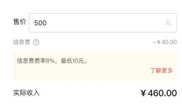 第五人格藏宝阁手续费怎么算手续费是以交易价格的8%价格来算的的,比如下面售价500,收取8%的手续费最后到手就是460元,另外手续费最低是10元。 之前卖了一个小情,1w2的手续费将近1k,疼的我抓心挠肺,而且以前可以走中自洗省个手续费,cbg出了新规之后就难了