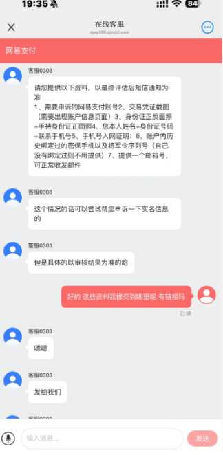 网易支付被冻结怎么办这个号因为活跃度太低被冻结,无法在网易支付app内直接找客服申诉,所以是从微信公众号--网易支付-个人服务-在线客服进行申诉的(这里可以说明情况以后直接给客服提供资料 感觉会快一些) 大家找在线客服的时候可以直接输入“转人工” 因为实测不管输入“人工客服”还是“RG”都很机器人。
