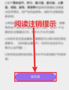 阅读注销提示,点击下方的【我同意】