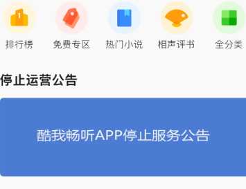 酷我畅听停止服务怎么解除目前是停止运营了。 想要看书的小伙伴们,小编推荐喜马拉雅极速版,就是广告有点多,每天看几个广告可以免一天的广告