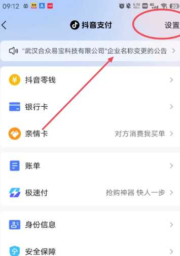 4,在抖音支付页面 -> 点 【设置】 (右上角那个小齿轮)