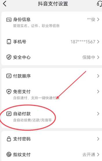 5,进入设置 -> 找到 【自动付款】 (点它!)