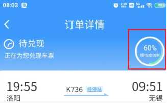12306候补60%几率大吗有一定的几率成功的,大概需要一两天的时间,大家可以耐心的等等的。 12306会分好多时间段放票,一开始抢不上先候补,有时间多刷刷,尤其是半点、整点~