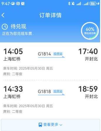 12306候补60%能兑现成功吗不一定,上一次候补,60%想着睡醒就候补到了,结果起来看到失败了。 不过也有小伙伴说目前我还没见过候补失败的,要么成功,要么其他方案出票了主动退款,或者是觉得要凉了扩大一下候补面然后出票的