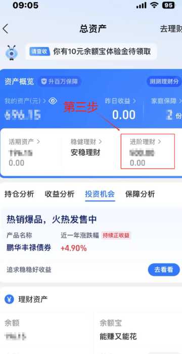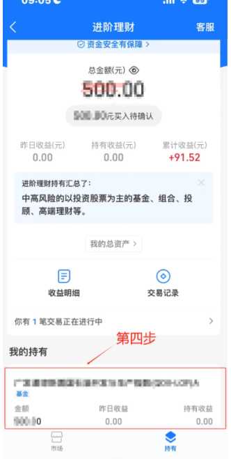 3,【进阶理财】下面有我的持有基金,只要你买了基金持有的份额都在那里,找到自己想要赎回的基金点击进去
