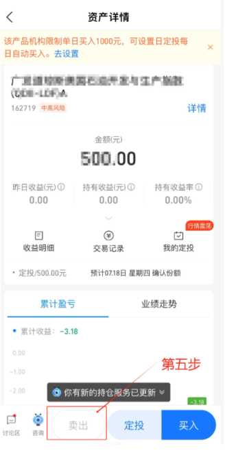 4.在基金下面找到【卖出】点击即可; 卖出的宝子要记得哦,基金赎回的时间不是当天,是根据他们提示的3-15个工作日内哦