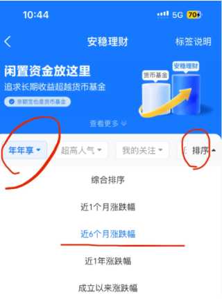 5,划重点来了,一定要按照近6月收益率排序,这里有一个隐藏的坑,很多基金买进去你会发现它并没有一开始展示的收益那么高,因为你看到它高的时候说明它的好时候已经过了,所以你一定要看最近的收益,不要被表面展示的骗了