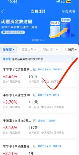 4,筛选里面最好的产品,点【年年享】,因为这个收益最高,一年能有5%-7%,其他月月、季季啥的只有3%左右。