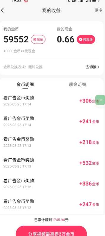 抖音极速版金币兑换比例1000金币等于0.1,也就是一万金币一块钱。 抖音极速版金币暴涨方法分享3个抖音极速看广小技巧,祝大家快速涨金币。 1,打标签,首页搜,找带有广的看20分钟 2,多看首页,呆直播间,偶尔互动,刚需买买买 3,活跃度很重要 注意:遇到金币少的时,你得先养,就按你的步奏养个二三天,别去开箱,签到每天去完成,每天看推荐页半的小时多,刚需的买,别买买买。 另外先打个标签吧,没有买的需求,就在首页搜你感兴趣的内容,比如汽车,家电,手游,搜到的视频,找带广的看,一定要看完,每天看个半小时,再蹲蹲直播间啥,第二天重复,然后第三天当你打开刷到的都是你曾经搜索过的,就算完成了  |