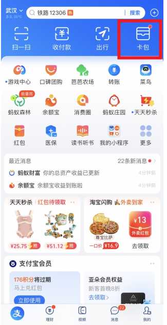支付宝碰一碰红包在哪里找在卡包里面。 1,打开支付宝app,点击顶部的卡包进入