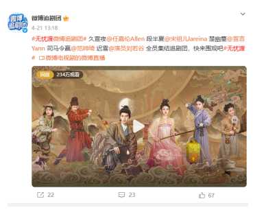 微博追剧团在哪里看到的?对于喜欢追剧的小伙伴们对于微博追剧团不陌生的吧,前段时间热播的无忧渡,线下的追剧团看的小编爽死了,特别是任嘉伦星奇摇在我手机里摇了好几天,那一般微博追剧团在哪看直播呢?