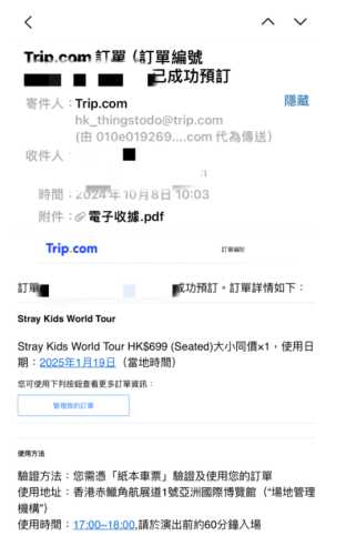 4,付款成功后就会出现确认成功的界面,同时也会发邮件到填写的电邮里面(如p5)。到这步就恭喜你成功的获得了演唱会门票~