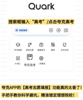 夸克艺术生怎么填分数具体步骤如下: 1,打开夸克APP,点击【夸克高考】