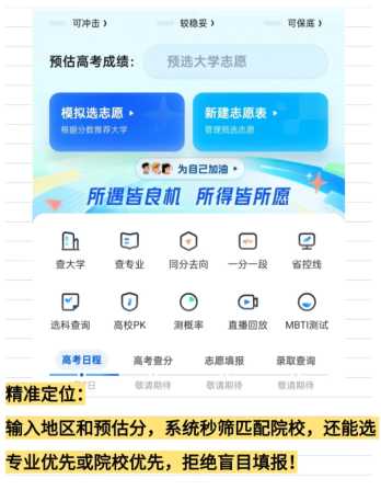 2, 填写高考地区和预估成绩 3,选择专业优先,填写意向专业(很重要!!!这一步很重要,院校专业录取分数才能决定你未来的就读专业和就业方向,所以一定要认真填写) 4,选择意向城市(可多选) 5,查看符合条件的所有院校(可以在顶部选择【院校优先】or【专业优先】),注意右侧的录取难度 6,对照自己位次,初选院校,查看该院校该专业招生信息和录取难度(对比该专业的录取位次和分数)也可以查看该专业组下“不符合筛选条件”的专业进行比对考虑(这是你报考后可能面临的调剂专业)