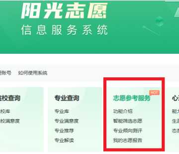 2025阳光高考网模拟志愿填报怎么填流程图1,点击上面官网进入,然后点【志愿参考服务】进入;