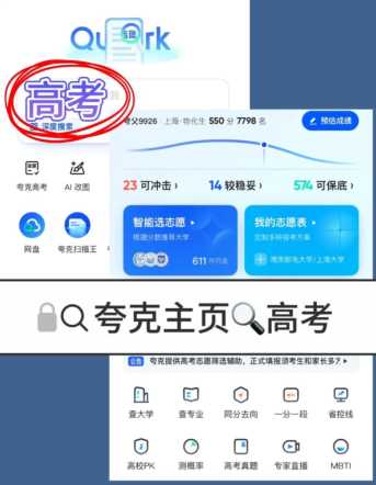 张雪峰推荐高考填报志愿软件是哪个夸克志愿 张雪峰都推荐的夸克志愿,把填志愿的难事儿全简化,高考生速锁,上岸更稳了,下面看一下操作流程: Step1:夸克首页找入口 打开夸克APP,搜索框敲「高考」,点「夸克高考」专区,直接进志愿填报“快车道”!