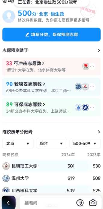 抖音搜索高考志愿填报是真的吗免费吗是真的,免费的,不需要额外花钱的。 输入分数和性格后,AI 自动生成了报考方案,连「医学 8 年制 vs 计算机 35 岁危机」这种灵魂拷问都给分析了!最后还能一键生成报告,真是太省心了! 目前AI填报志愿功能各有优劣,广大考生在填报志愿时一定要慎重考虑,结合自身兴趣、职业规划及家庭经济条件,在AI推荐的基础上进行二次验证和调整,选择出自己理想的专业。