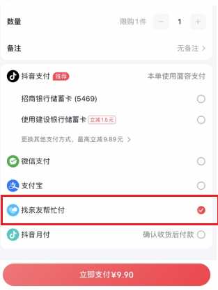抖音代付怎么操作1,打开抖音商城,选择自己喜欢的商品下单,在付款的时候需要注意了,选择【找亲友帮忙付】,点击立即支付;