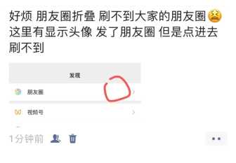 朋友圈更新看不到怎么回事看不到是因为朋友圈折叠了。 近日有小伙伴称,今天突然发现好多人发的朋友圈我刷新不到,明明有提示她发了朋友圈,一点进去朋友圈,刷新老看不到,得点好友的主页进去朋友圈才能看到,但是应该不是针对广告吧,因为朋友圈也有别人的刷得到得广告 ,估计是随机屏蔽一些人