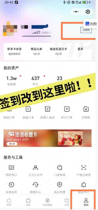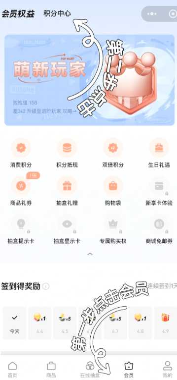 泡泡玛特积分怎么领取签到领积分:打开泡泡玛特小程序,点击我的,然后右上角签到领积分;