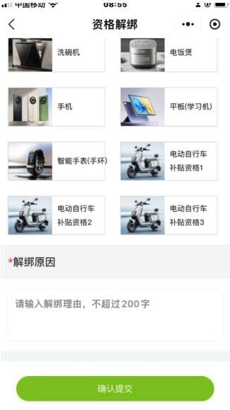 5,下拉选择各种家电的图标,最后写上解绑原因,提交。